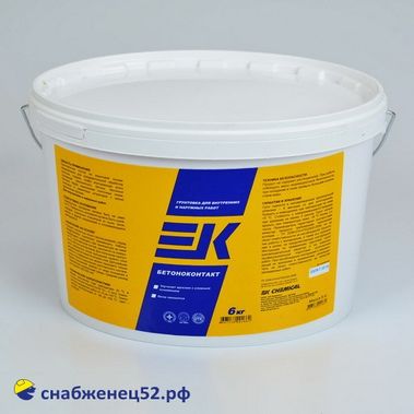 Грунтовочный состав на акриловой основе ЕК БЕТОНОКОНТАКТ предназначен для предварительной обработки плотных, гладких, слабо впитывающих влагу оснований (монолитного бетона, бетонных блоков, цементных штукатурок) перед нанесением плиточных клеев, гипсовых и цементных штукатурок с целью увеличения адгезии.