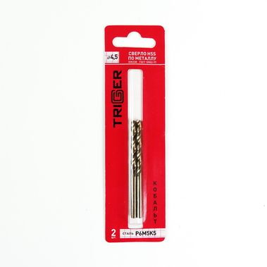 Сверло по металлу КОБАЛЬТ 4,5мм (сталь Р6М5К5) ТРИГГЕР, 2шт