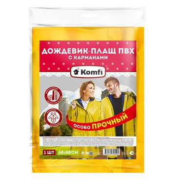 Дождевик ПВХ особопрочный на кнопках (желтый), 150мкм
