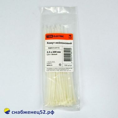 Хомуты-стяжки нейлон. белые 2,5*200 (100шт)