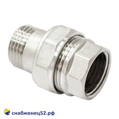 Предназначен для разъемного соединения труб одинакового диаметра. Выходы с внутренней и наружной резьбой 1".