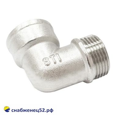 Предназначен для соединения труб одинакового диаметра под углом 90 градусов. Имеет один выход с наружной резьбой и один выход с внутренней резьбой 1".