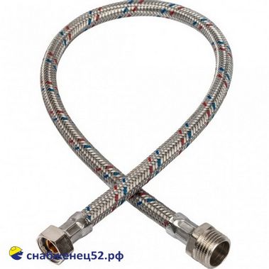 Материал: резиновый шланг (EPDM) в оплетке из нержавеющей стали, латунные гайка и штуцер