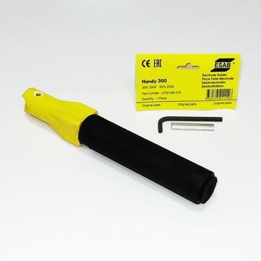 Электрододержатель Eco Handy 300 винтового типа предназначен для закрепления и удержания электрода, для удобного манипулирования штучным электродом во время выполнения сварочных работ, а также для обеспечения надежного контакта токонесущих частей с электродом.Рассчитан на номинальную токовую нагрузку 300 А соответственно. Используется для работы с любыми источниками сварочного тока и для всех видов ручной дуговой сварки и наплавки.